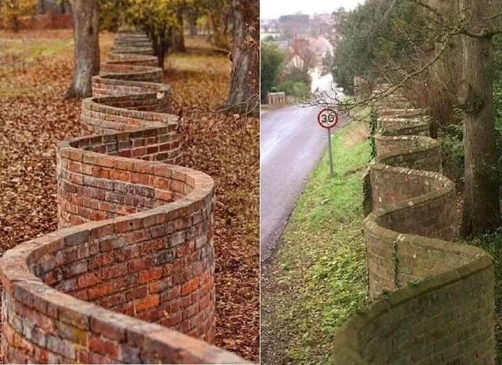 Crinkle-crankle walls use fewer bricks than straight ones which need at least two layers of bricks for strength: here arch support provided by the curves. I like them because they teach that a straight line is not always the best model, true for poetry and us all.
