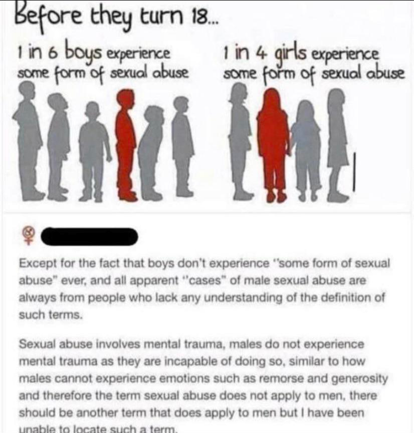 and just because men have a special need to sexually abuse women and children