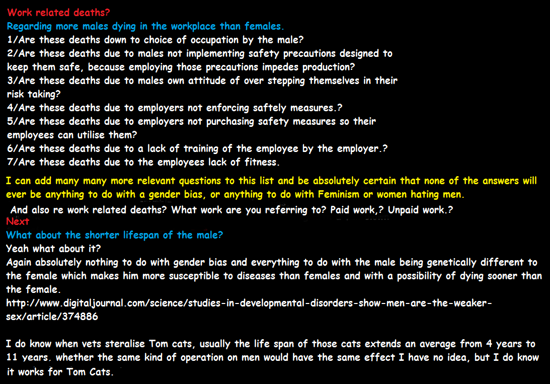 doesn't mean men should be criticised for it, well not in a man's world because in it men are soo special and are above the law and men created their loop holes in their laws so they could escape justice