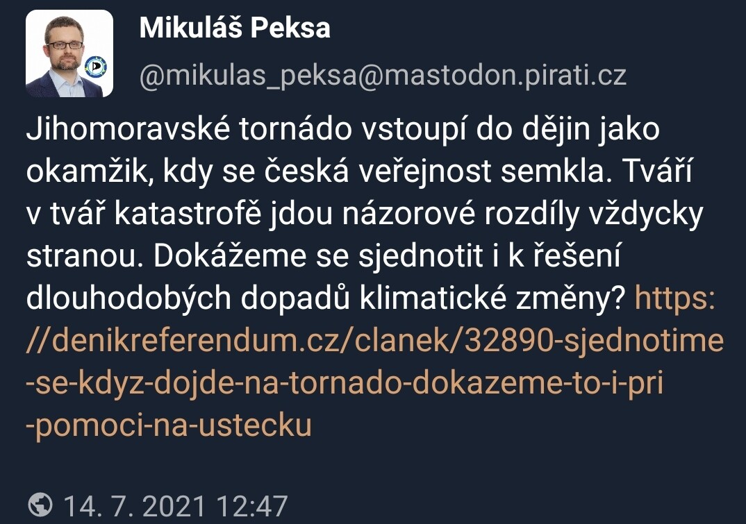 Mohl pochválit náhlou spolupráci, ale místo toho cítil potřebu zakončit ten post žebráním o naši pozornost oproti jinému "problému"... Tím okamžitě dokázal, že ani původní pochvalu nemyslel vážně. ![]()