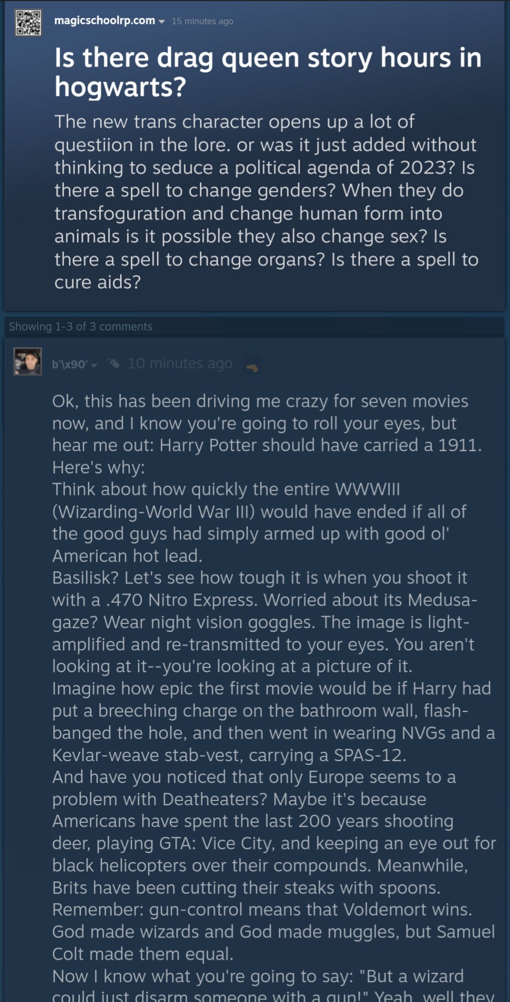 It says "Nobody should use that word ever because words are more harmful than literal harm. I would put babies in a blender before harming the babies with my words."