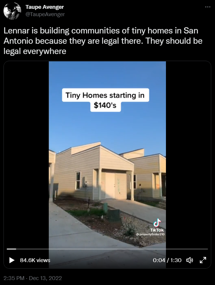 By the way this means we’re already well on our way to living in the pods. $140k starting means these homes are already as expensive as some normal-sized houses in the Midwest. And it’s not even like we’re talking about an expensive area here; it’s San Antonio.