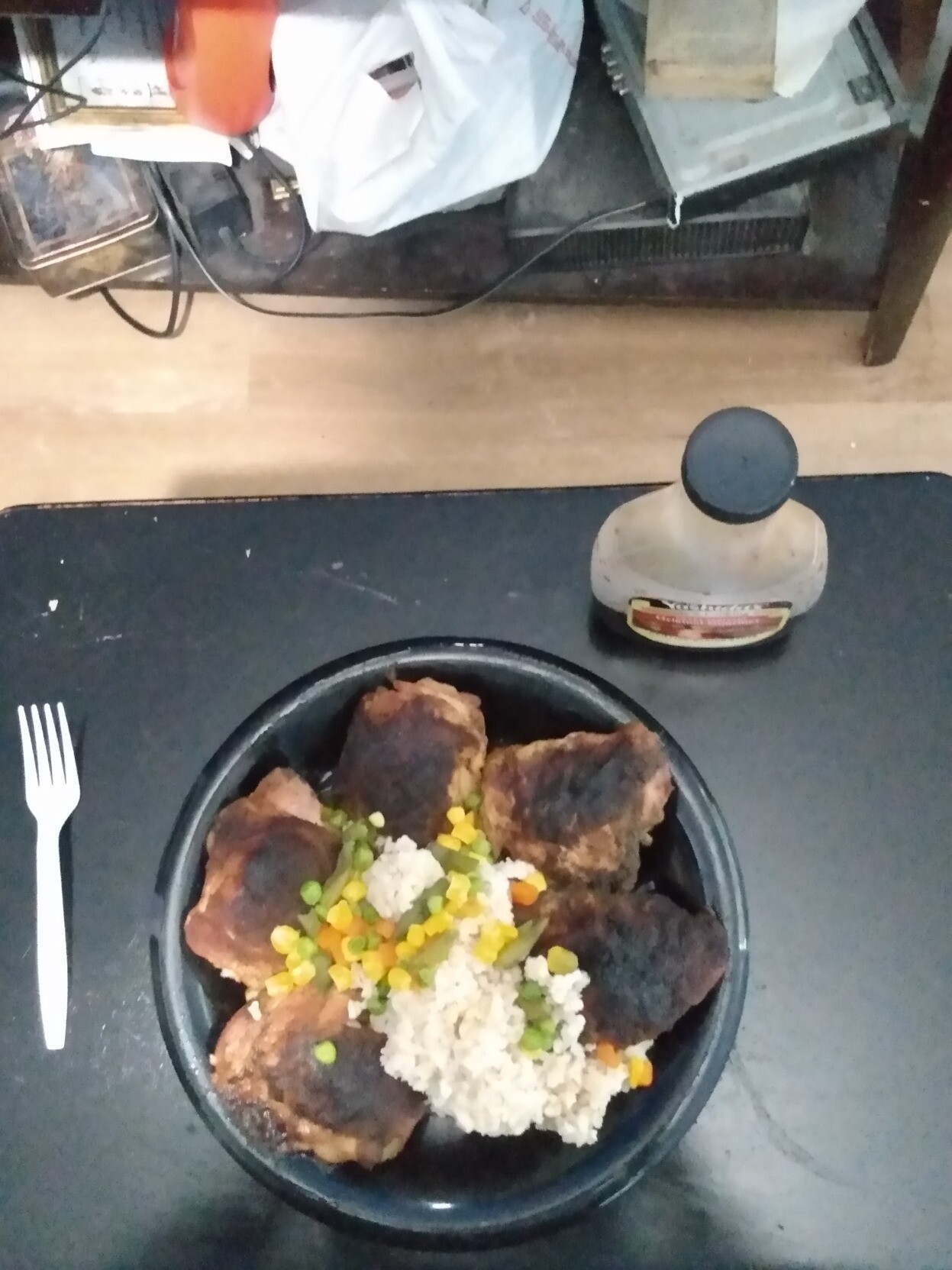 It's time to chow down on some Roast Chicken Thighs with Brown Rice and Mixed Veggies yo 🐔🍚🥦😋