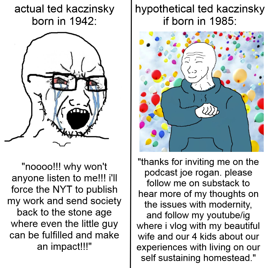 If you think Ted Kaczynski's problem was he was Silent Generation and not a Millennial then you have no understanding of him.