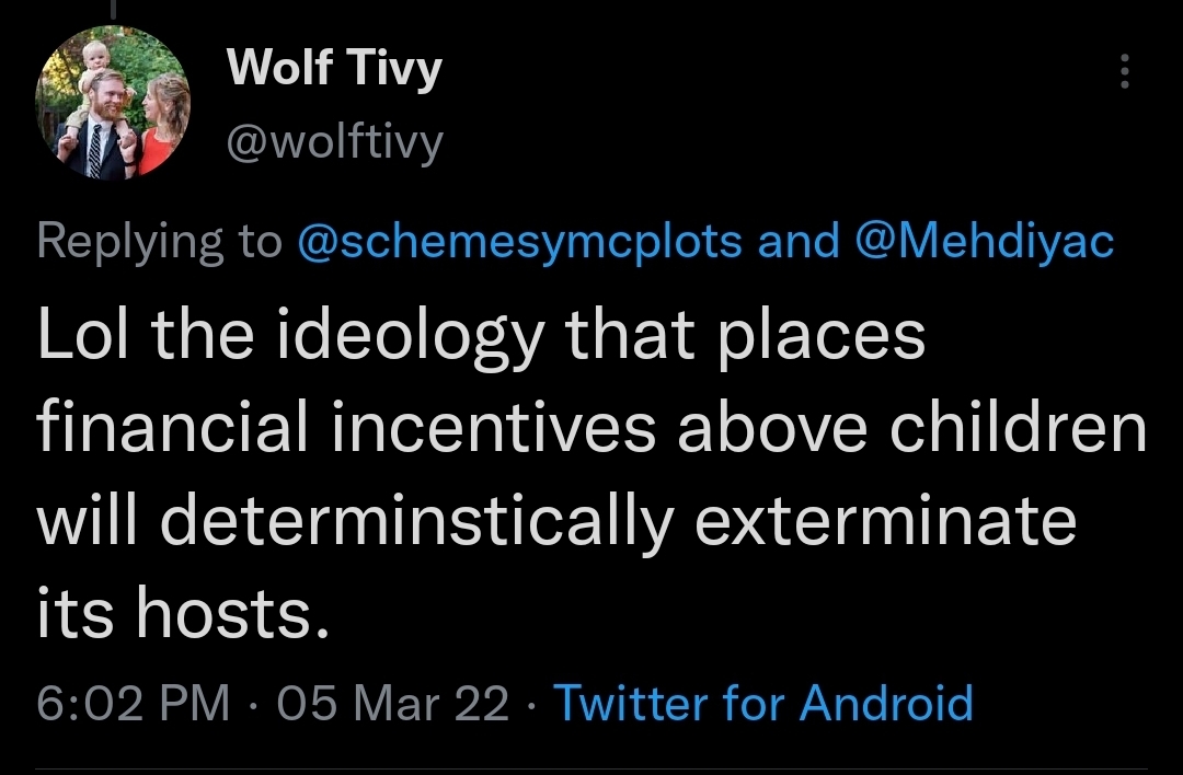 @LouisConde Biology isn't real, silly. Unlike physical traits or traits in every other animal, the human brain is a pure blank slate we can drill communism into if we remove this bourgeois class dynamic or whatever