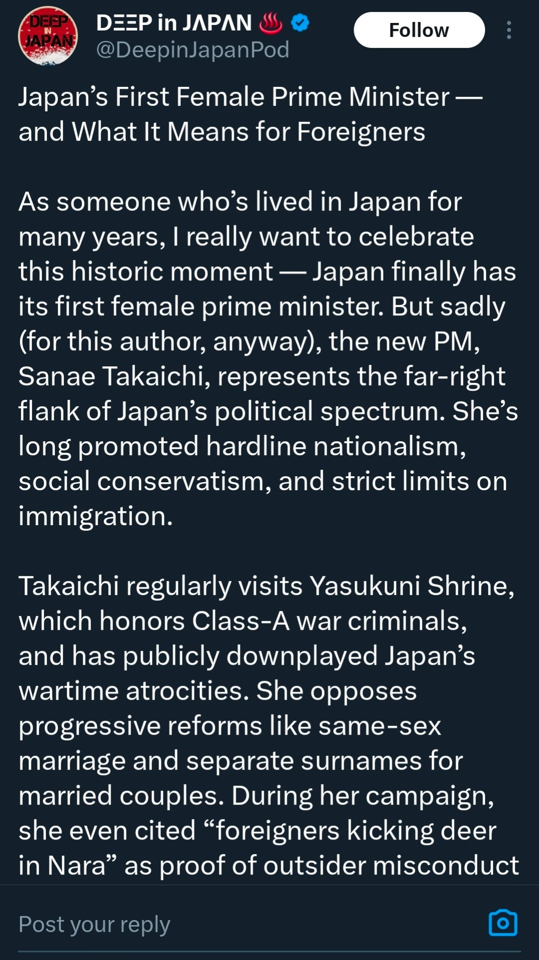 It’s unfortunate she’s into censorship but she looks less willing to give credence to those who want to perpetually guilt trip Japan and is against gay marriage in current year. I guess we just see how it goes. If it was Koizumi who came in second then they truly would be fucked