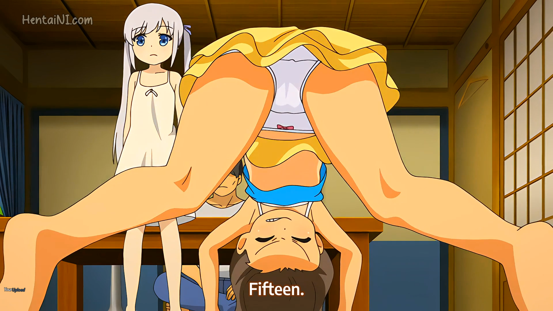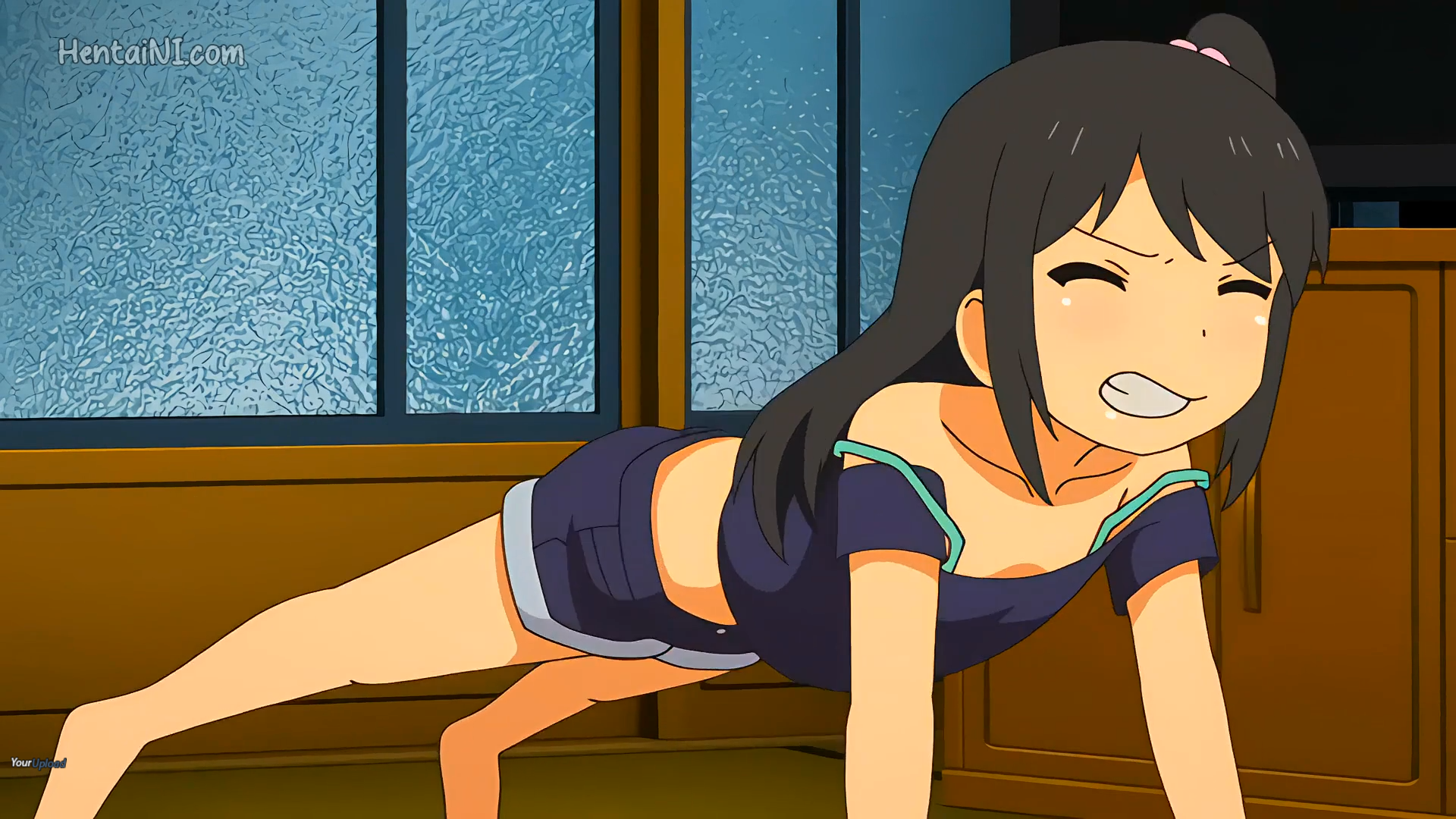 They do some push-ups, chie says she wants to be uncle's daughter and they take a bath together and fuck