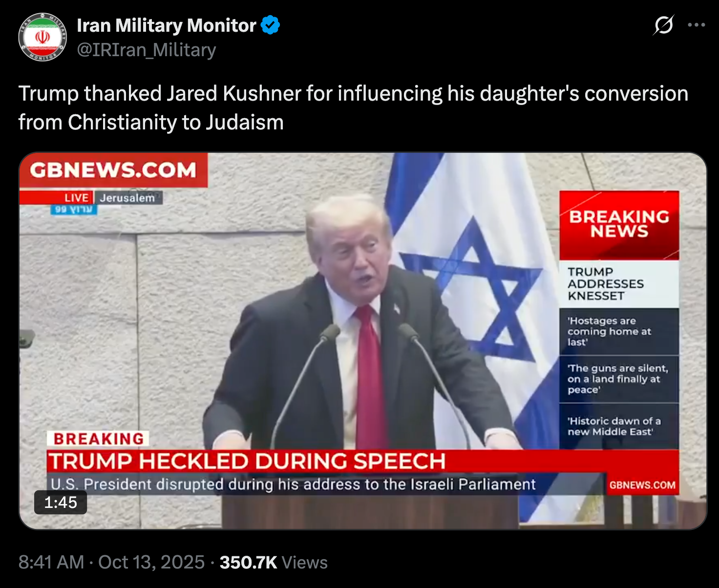He is thanking Jared for working on the Abraham Accords. He says that his daughter, who is married to him, converted to Judaism because Jared loves Israel so much and jokes that it wasn't in the cards for him. Nowhere in this video does he thank Jared for converting his daughter, that's fucking retarded.