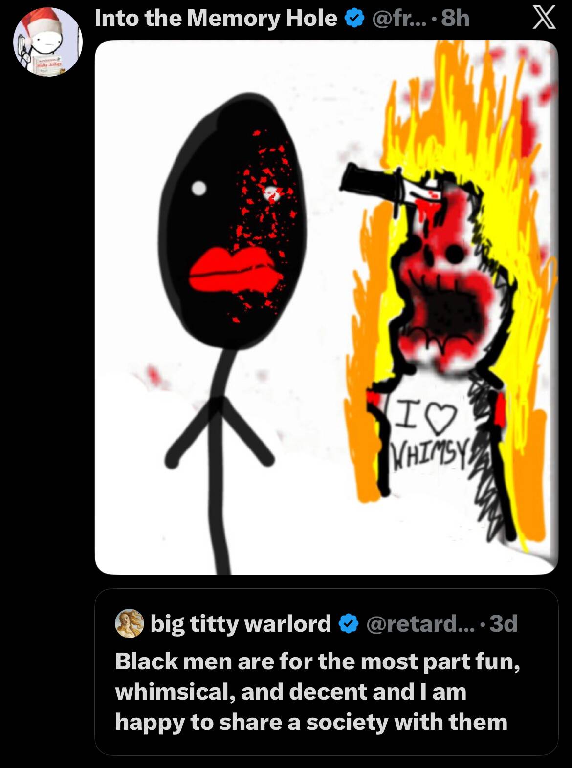 @egirlyuumimain @PraxisOfEvil this person lives in a predominantly white area where the black people are basically just funny white people probably