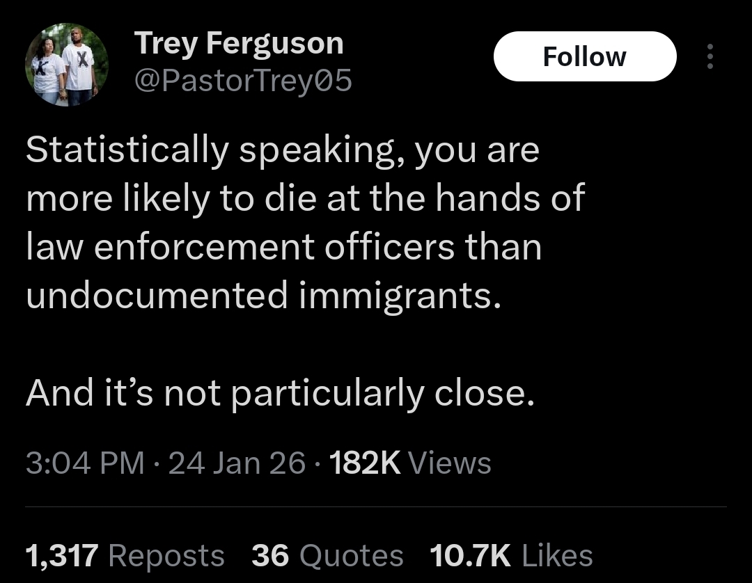 Plus he misses the point entirely that it isn't just about getting killed by them, it's all types of violence, it's rape, it's drug trafficking, and it's even less serious but still highly concerning things like them affecting the housing market and being unnecessary baggage on government programs. This is kind of why the whole "we are only targeting the worst of the criminals" is extremely bad messaging. They need to just go scorched earth and actually enforce the law. If they don't want to enforce it fully, then change it.