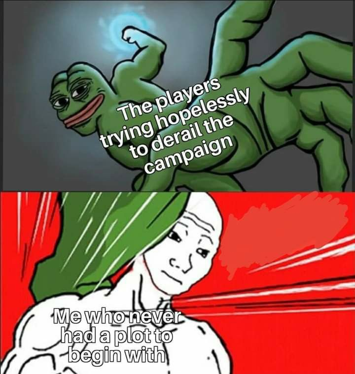 >mfw i have to make an entire session in the feywild now while a key NPC's dead body freezes over in the middle of a tundra