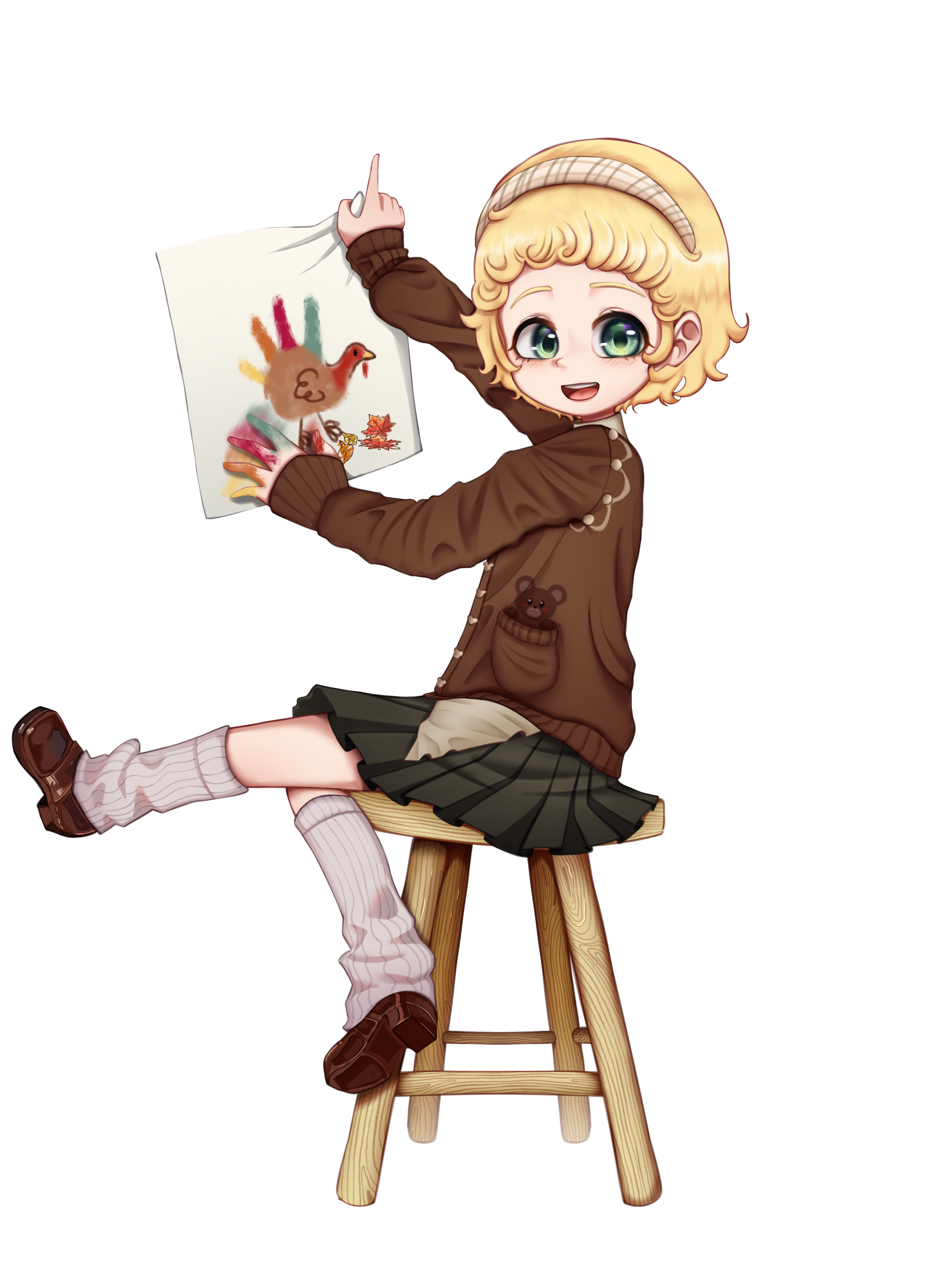 #cute #fingerpainting #turkey #loli #sfw #holiday #blonde #openmouth #commission #art #digitalart #shorthair #socks #fullbody #wholesome #sitting #shoes #sweet #cute