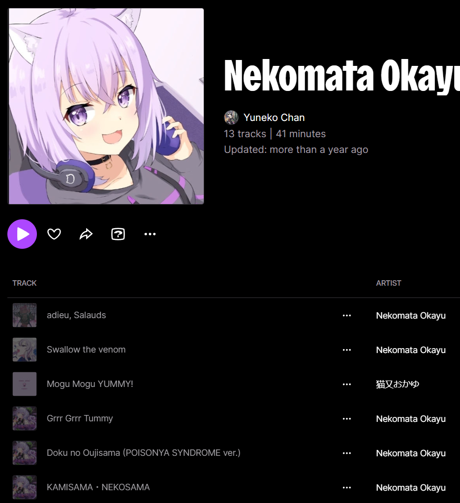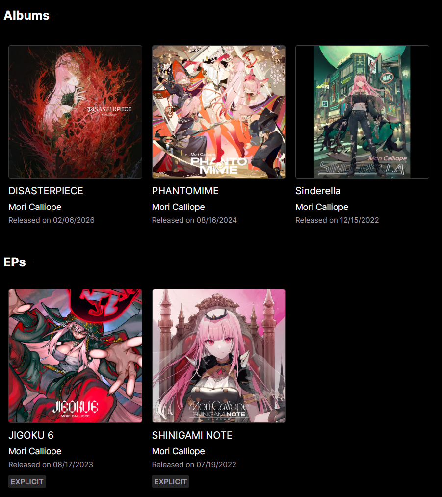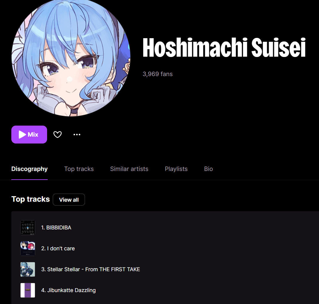 @teto some of it is on there, mori has a lot of music there for instance, but like okayu's and marine's music is nowhere to be found. there's nothing from gura either.