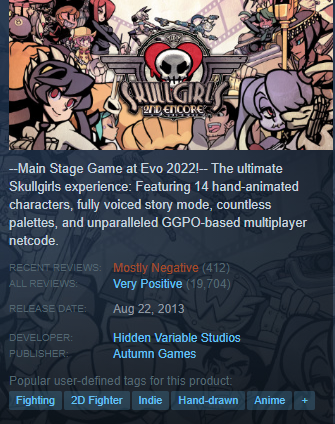 And the list goes on, wtf were they thinking? I put around 150 hours in what was initially a love letter to fighting games like Darkstalkers, MvC, Guilty Gear, ect just for it to now be handled by stupid people?