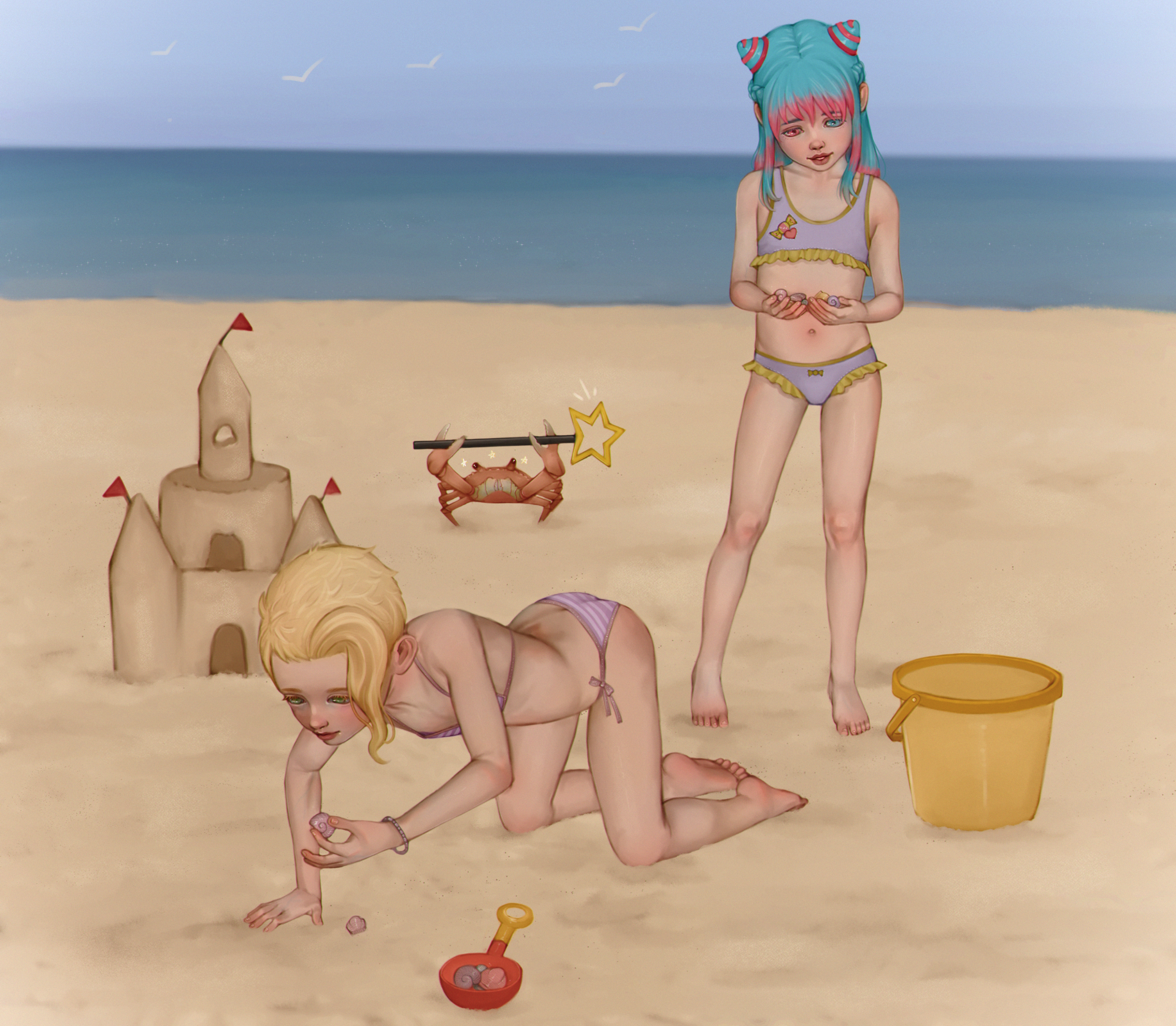 #beach #swimsuit #cute #sand #play #magic #crab #loli #SFW #commission