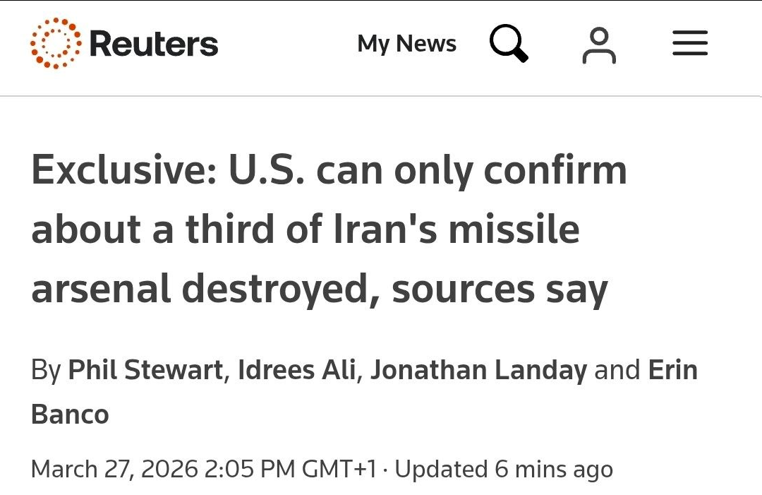 reuters claims only 1/3 of Iranian missiles have been destroyed