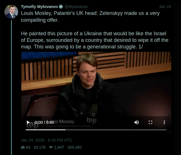 Oswald Mosley's grandson is the top Palantir stooge in the UK, and is involved in helping the jew Zelinsky.