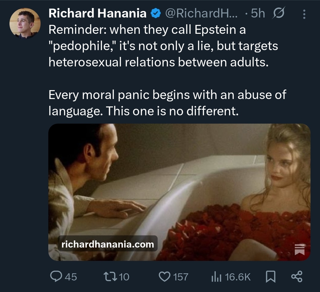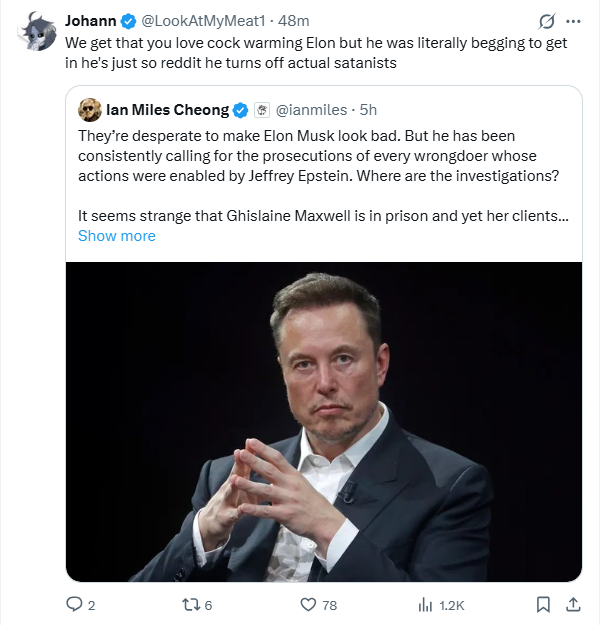 >buncha crazy shit in the Jeffstein Files going round >i should pick a topic and farm some engagement >ummm weird bill gates stuff? no >uhh some prince andrew things, nah >trump stuff, trump stuff... nope >elon musk being a turbosperg? hmm nah >oh i've got it! >i'll do the whole ephebophile thing apropos of nothing