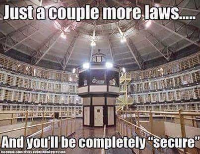 Who would have thought in 1980 that the USA would soon have curfews, gun bans, NSA wiretapping, checkpoints, forfeiture, the end to the right to silence, free speech bans, torture, kill lists, no fly lists, searches without warrants, private prisons, mandatory minimums, 3 strikes laws, DNA databases, CISPA, SOPA, NDAA, IMBRA, FBAR, FATCA, TSA groping, secret FISA courts, and Jade Helm?