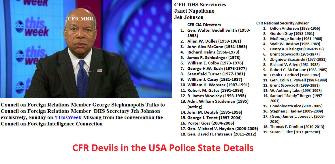 The report calls for a Council on Foreign Relations DHS run Police State. The focus of the police state are U.S. citizens. On December 2nd 2012 CFR member U.S. Homeland Security Director Janet Napolitano said the risk of âlone wolfâ attackers, with no ties to known extremist networks or grand conspiracies, is on the rise as the global terrorist threat has shifted. Council on Foreign Relations member Republican Senator John McCain proposed an amendment to a defense authorization bill that could allow American citizens who are suspected of terrorism to be denied a civilian trial. The recently passed National Defense Authorization Act (NDAA) turned McCainâs proposal into law and allows American citizens to be detained indefinitely without trial. The NDAA destroys a citizenâs right to due process. Democratic Senator CFR member Diane Fienstein voted for the bill.