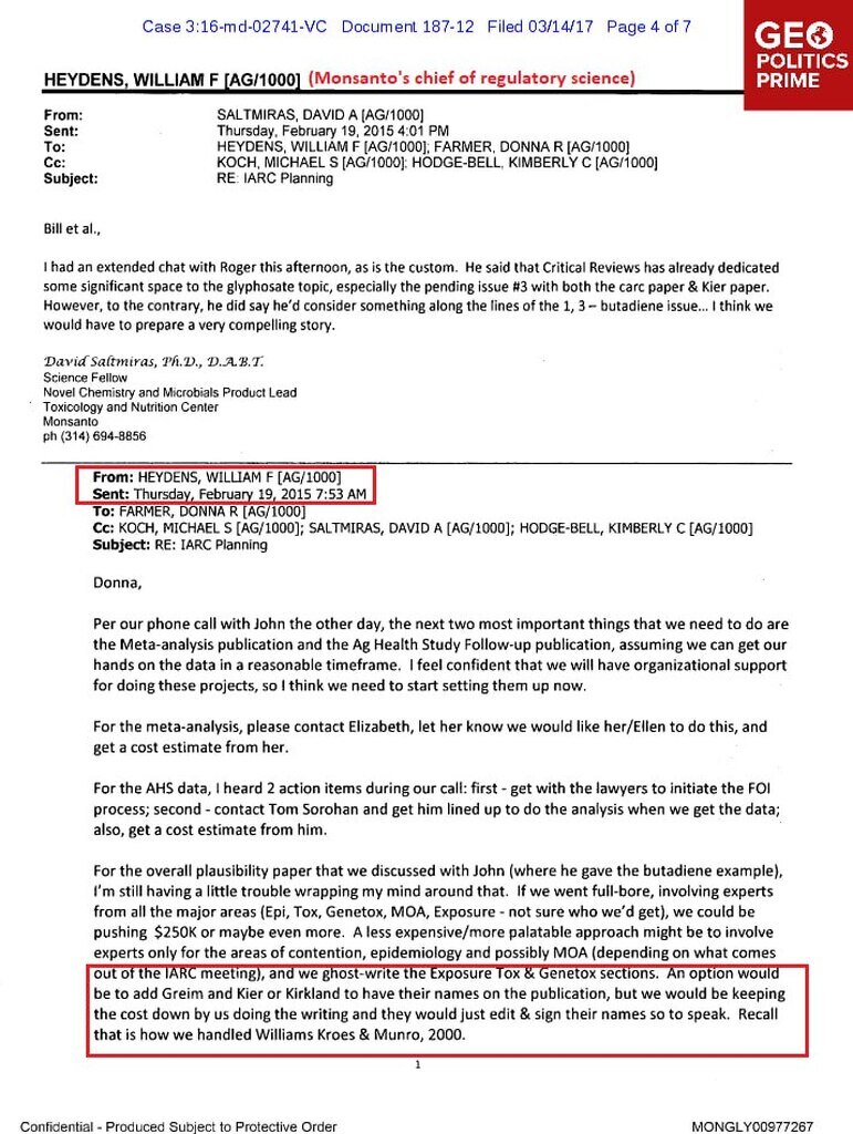 🔴 UN cancer watchdog IARC labeled glyphosate a “probable carcinogen” over a decade ago