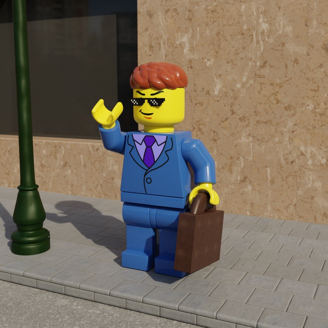 Here we have a capistalist lego in a suit, getting out of the bank, all smug and cringeful... what a fool he is!