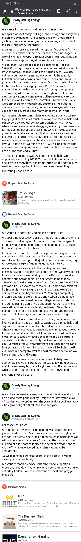 @matrix Do you want your favorite small businesses to be more likely recover from the pandemic? Perhaps, consider not looting them and burning their buildings, especially while restrictions are still in place.