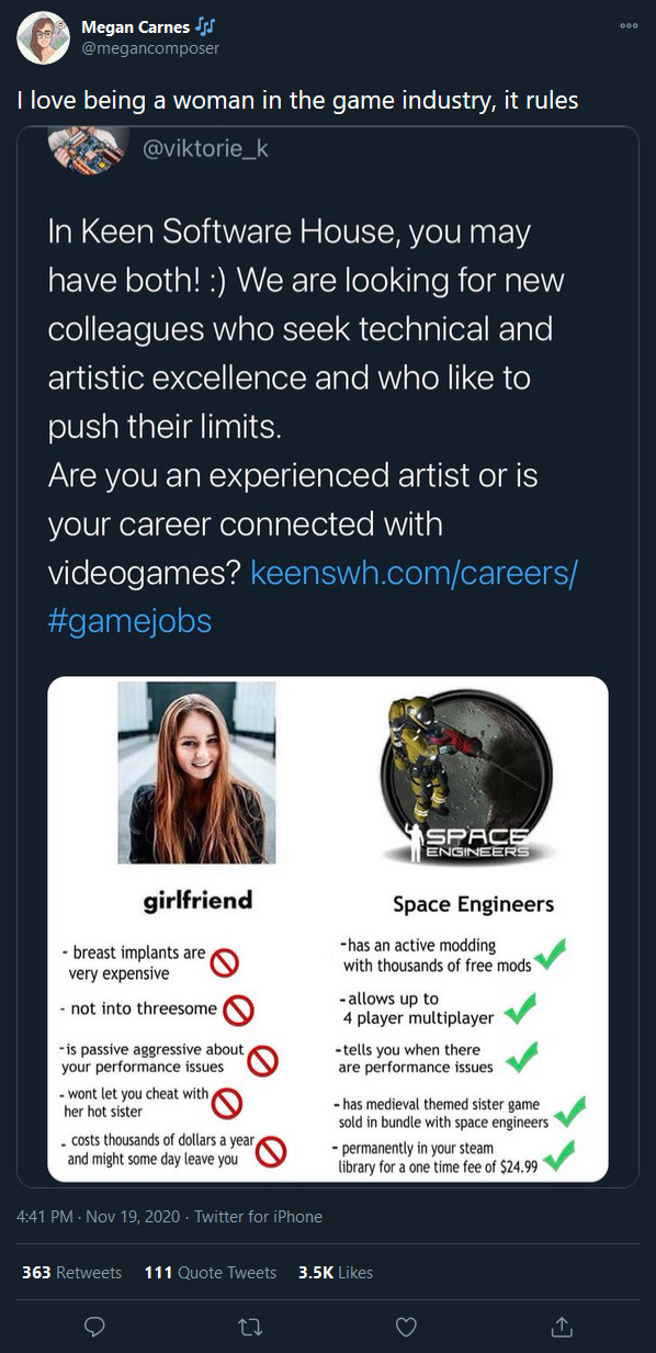 Do you know what's best for women in game development? Dogpilling a woman in the gaming industry over a joke