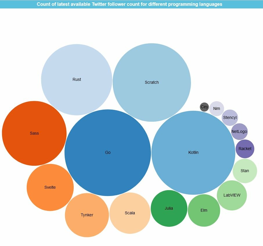 If I consider their Twitter follower count, I may need to learn Go, Kotlin, Scratch, Rust,..