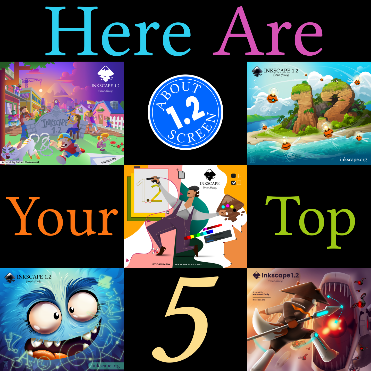 The #Inkscape community has chosen its Top 5 favourites for the 1.2 About Screen!