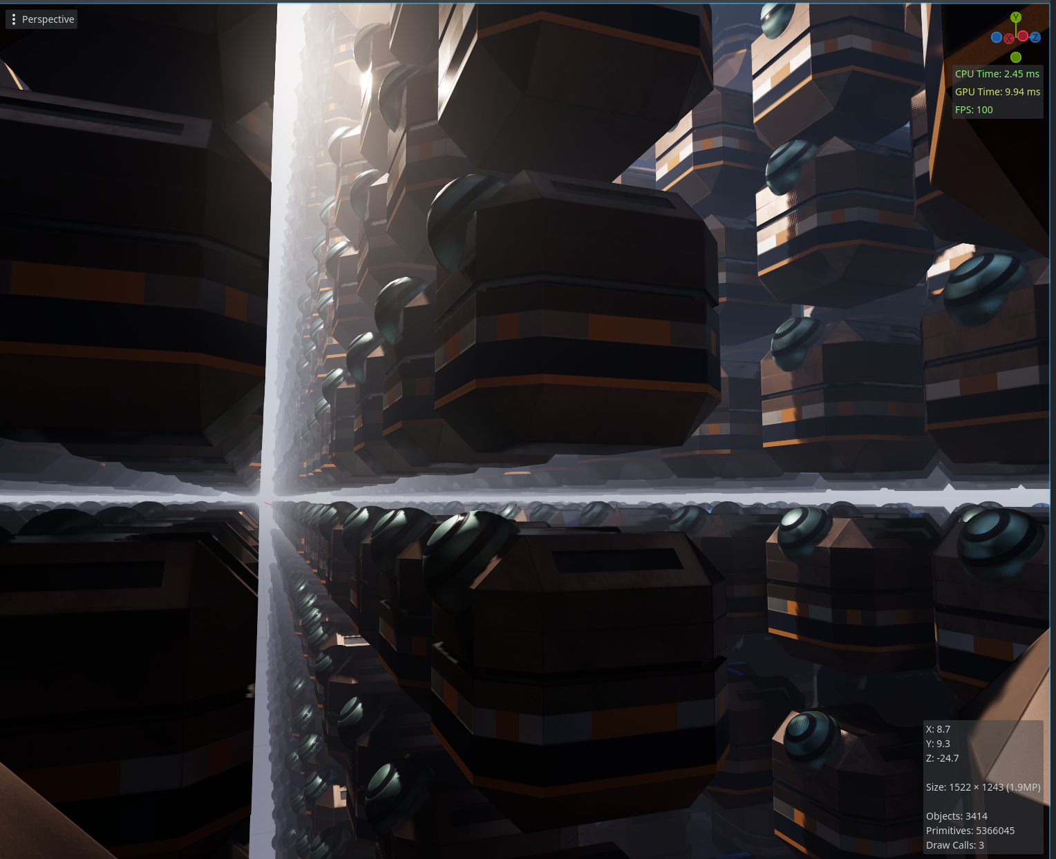 You can see how nicely Godot batches rendering when using the same shader and material!