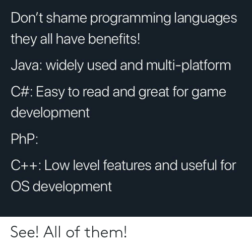 C/++/#, Python, Java, JavaScript, PHP, SQL, Assembly