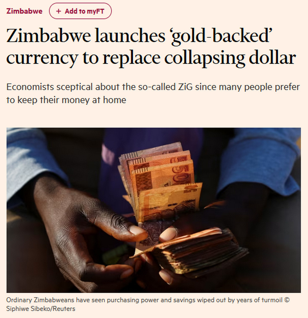 John Mushayavanhu, governor of the troubled southern African nation’s central bank, admitted on Friday that money printing had wrecked the five-year-old Zimbabwe dollar as he launched the ZiG, its replacement. https://archive.ph/NlA4b