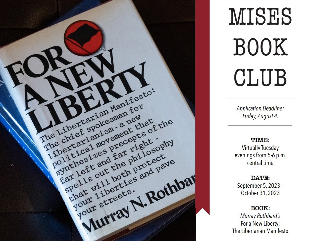 Students apply now for the inaugural Mises Book Club, beginning this September.
